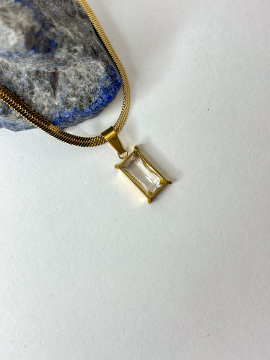 Snake Chain Necklace with White Stone Pendant - 18K Gold Plated | Waterproof | Anti-Tarnish