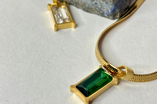 Snake Chain Necklace with Emerald Pendant - 18K Gold Plated | Waterproof | Anti-Tarnish