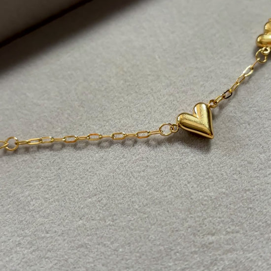 Add a touch of elegance to your collection with this golden bracelet featuring charming heart accents. Perfect for everyday wear or special occasions, this piece beautifully combines style and sentiment.