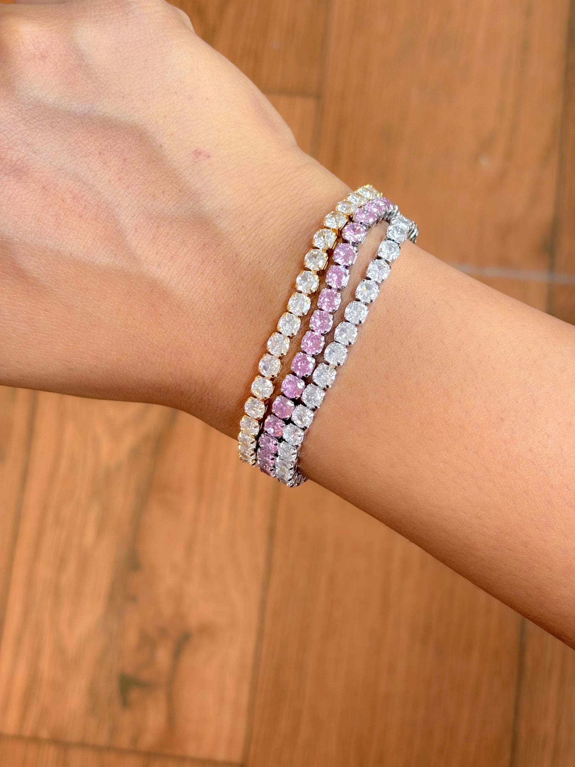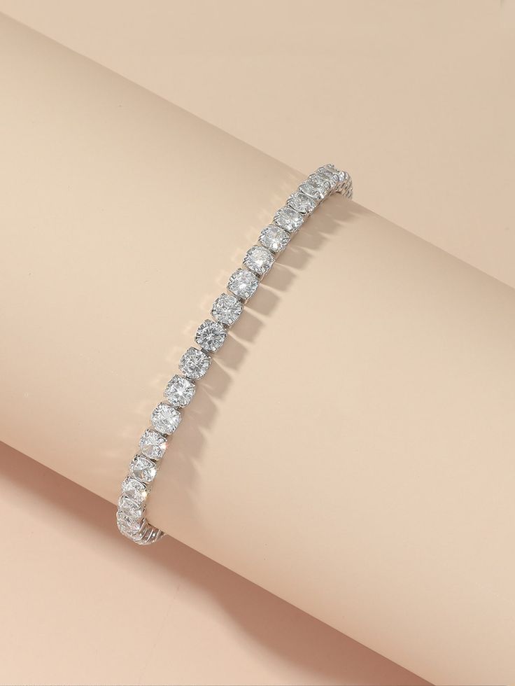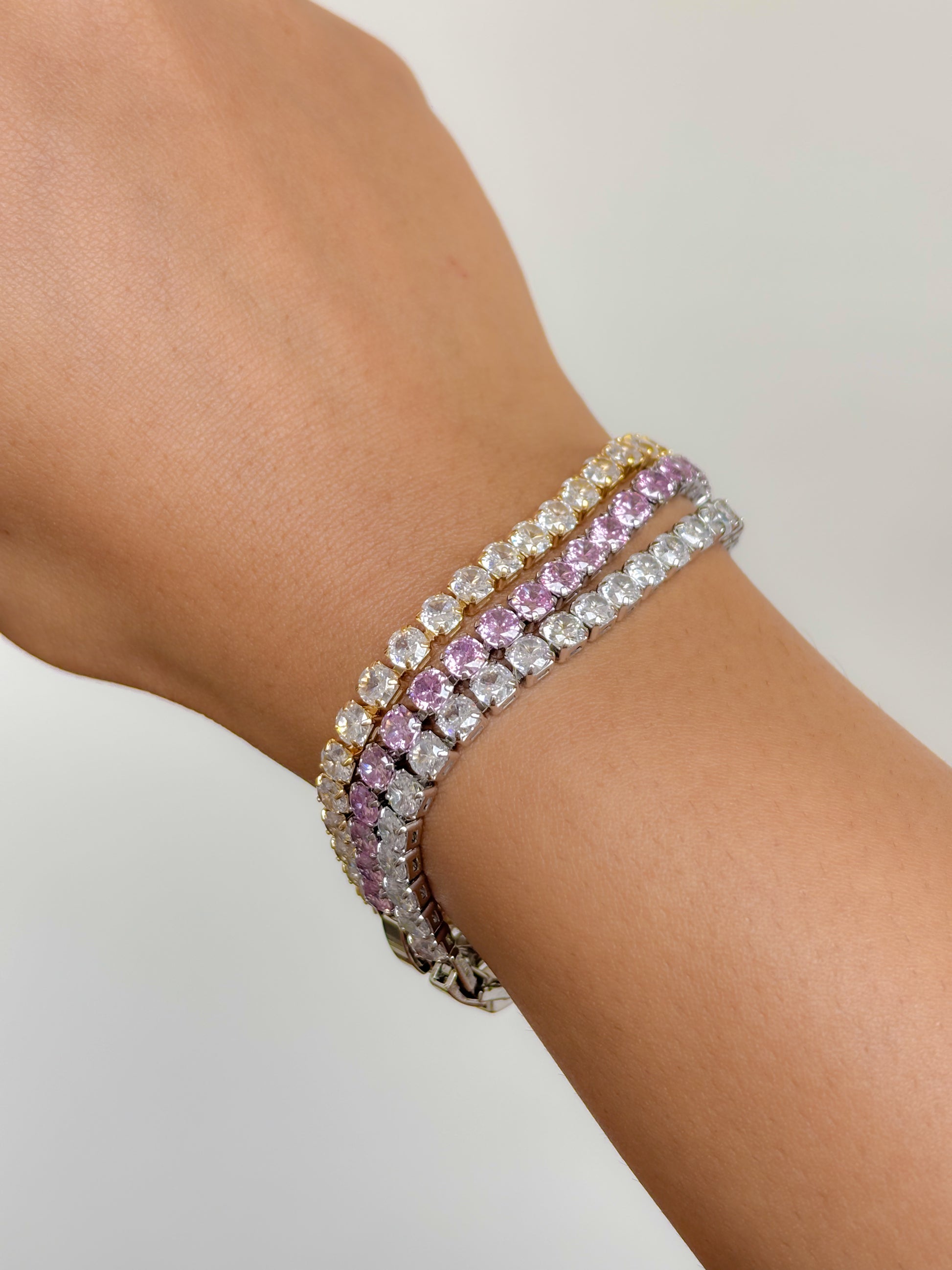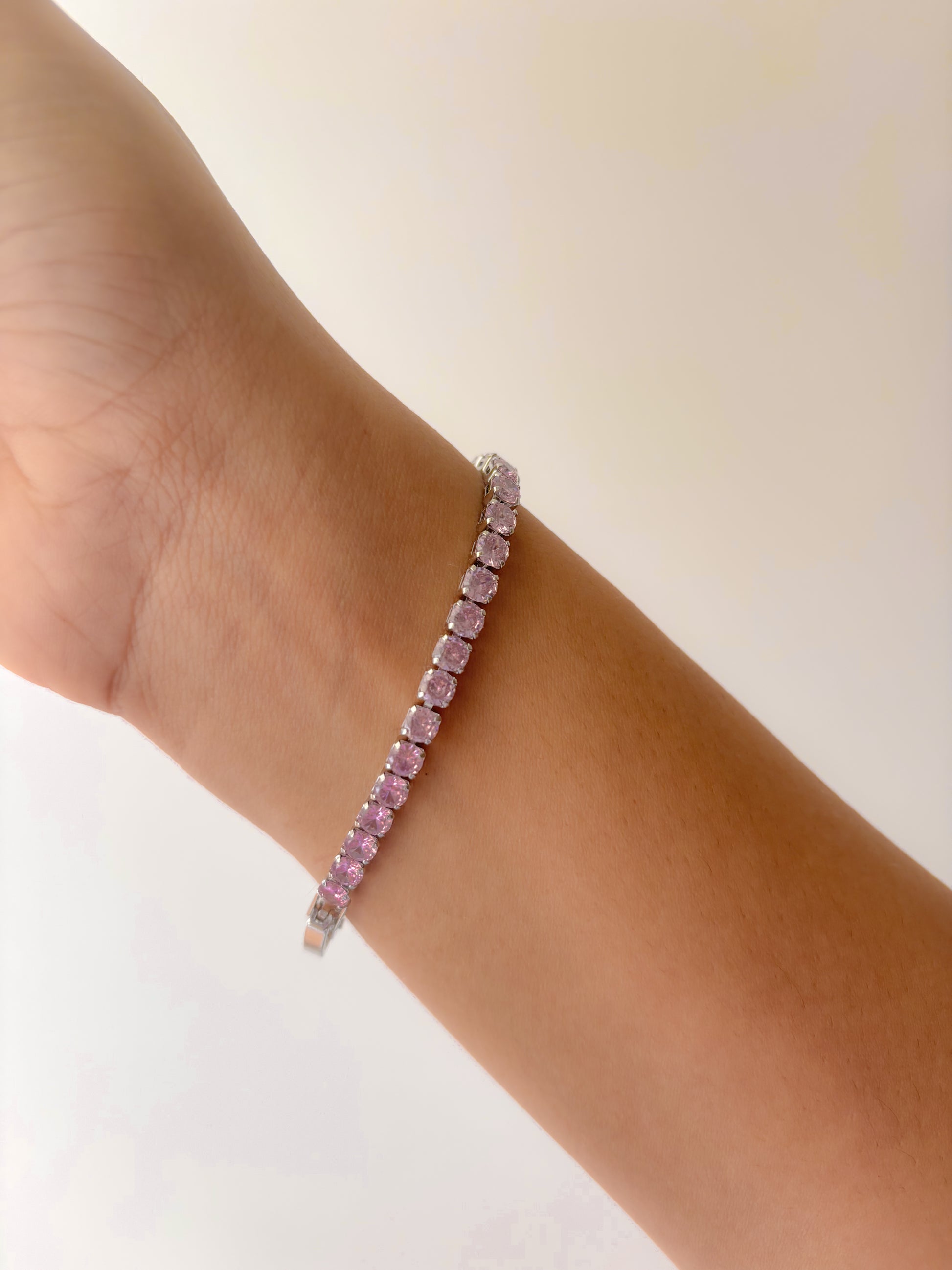 This tennis bracelet is so pretty and delicate. Perfect for stacking with other bracelets or wearing alone. The adjustable size is great. Very satisfied!
