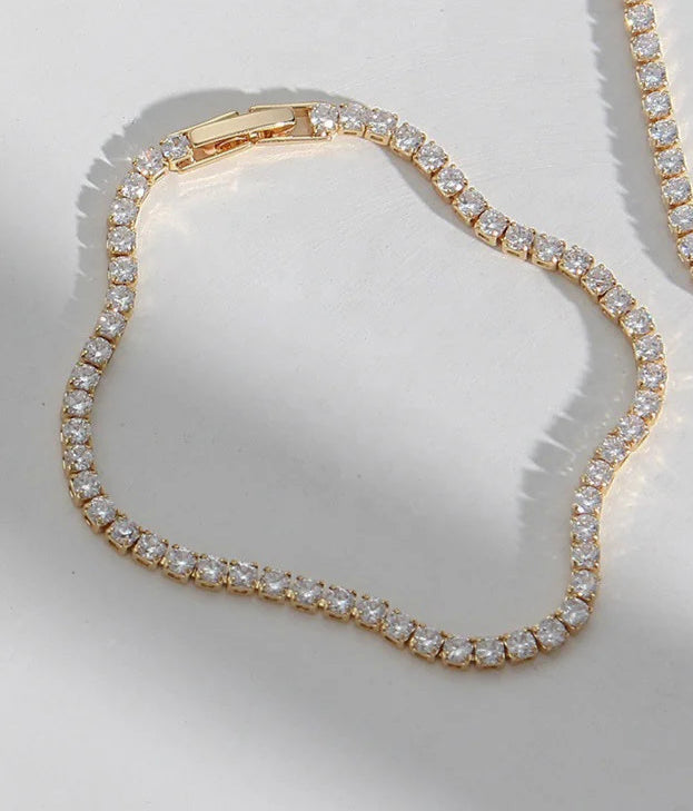 Classic Tennis Bracelet - 14 KT Gold Plated Rhinestone | 4mm | Waterproof | Anti-Tarnish