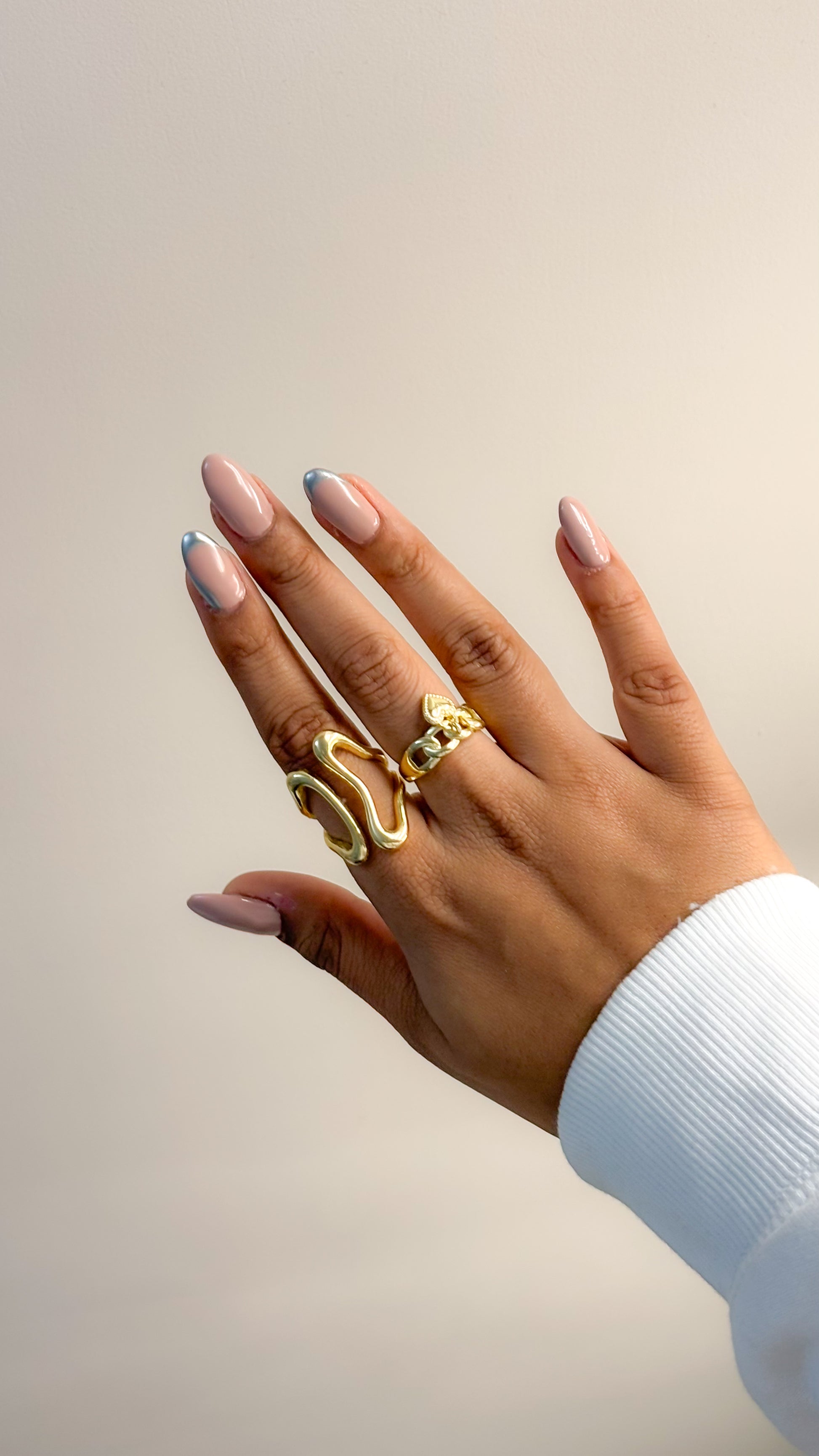A modern take on elegance, the Asymmetrical Ring features a unique, flowing design that stands out effortlessly. Crafted from high-quality 316L stainless steel with 18k gold plating, this adjustable ring is waterproof, tarnish-free, and hypoallergenic—perfect for everyday wear.