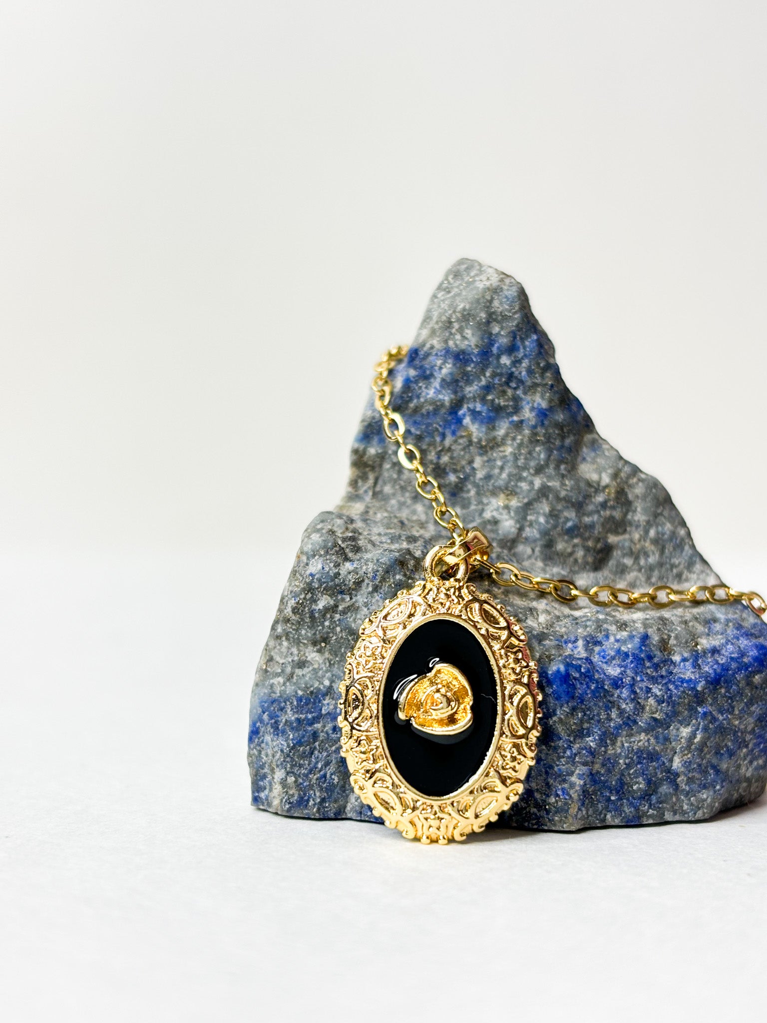 Add a touch of elegance and intrigue to your style with the Rose Pendant Necklace. Featuring a beautifully crafted rose charm, this necklace exudes sophistication and subtle drama. Perfect for both casual and formal occasions, the Rose Pendant offers a timeless yet bold accessory that effortlessly enhances any ensemble.