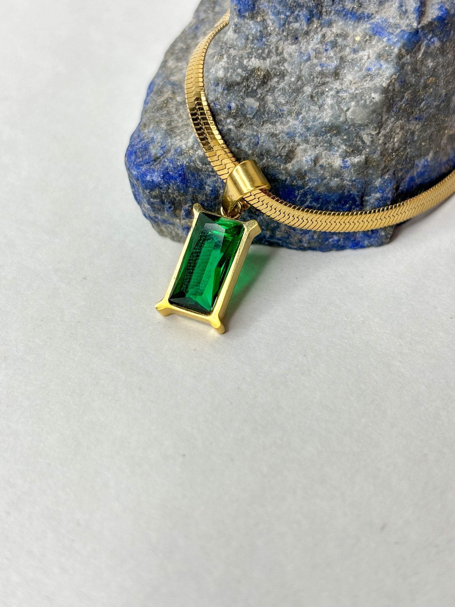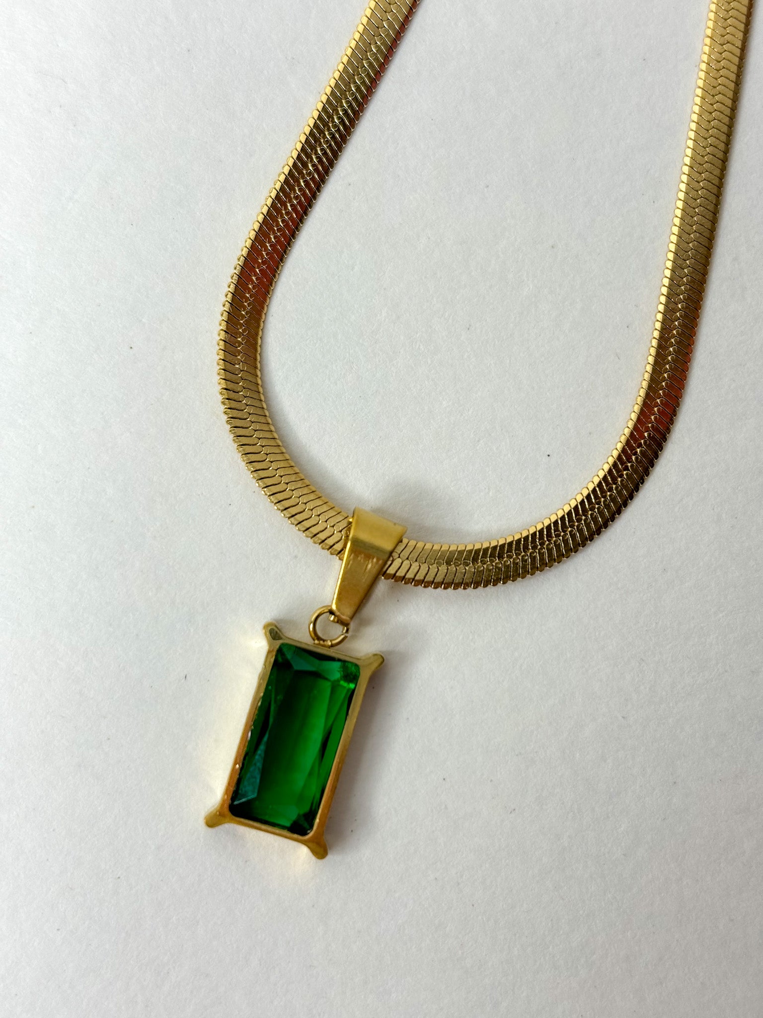 Snake Chain Necklace with Emerald Pendant - 18K Gold Plated | Waterproof | Anti-Tarnish